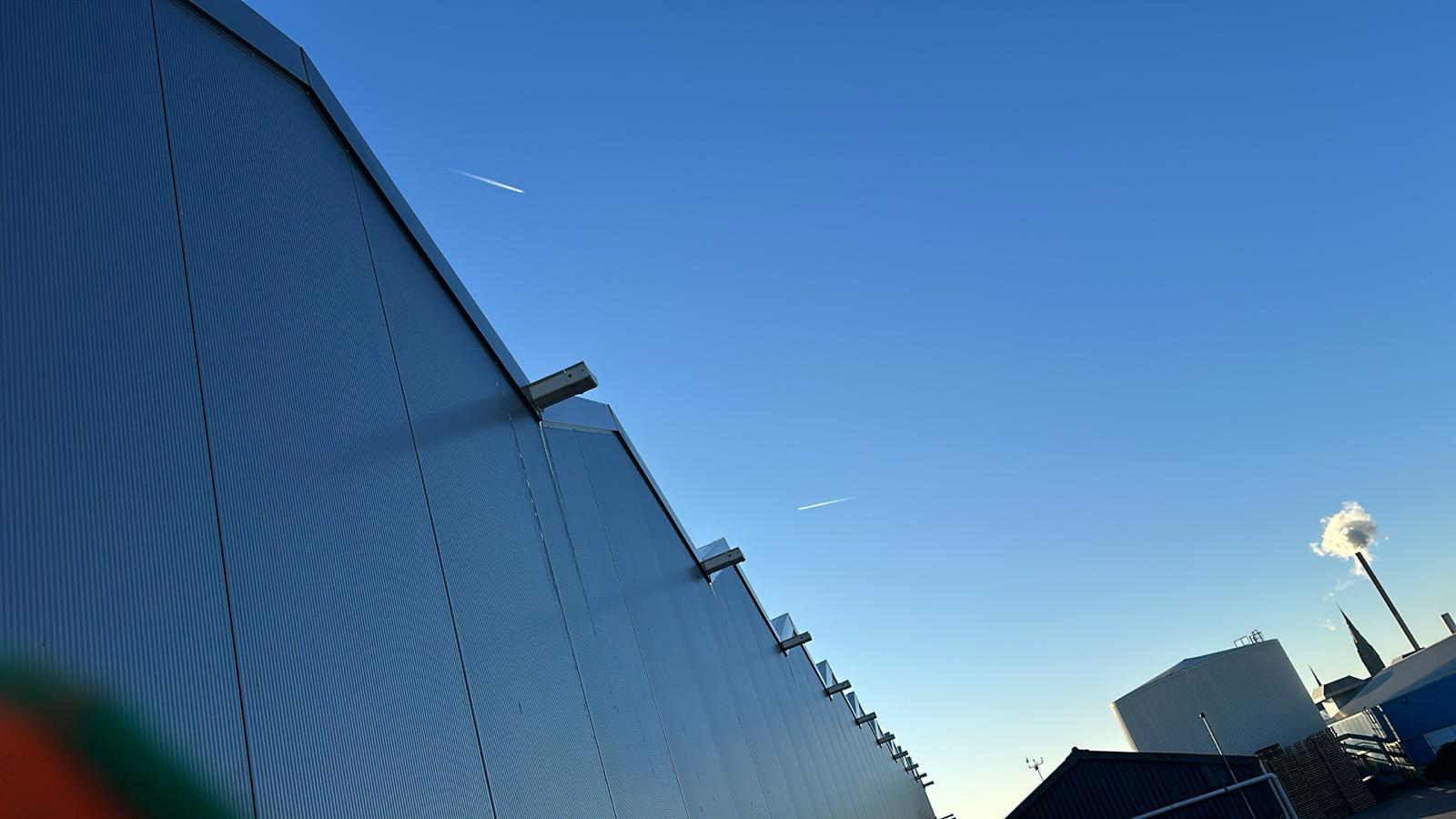 - Renovatie van bedrijfshallen met knikdaken en sandwich gevels.